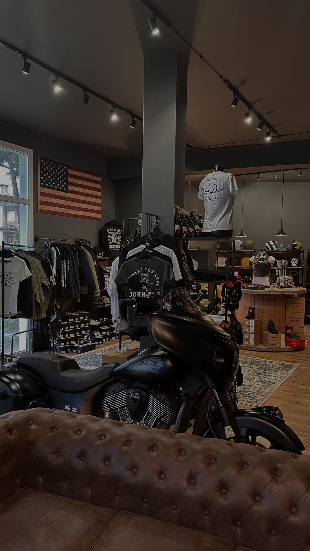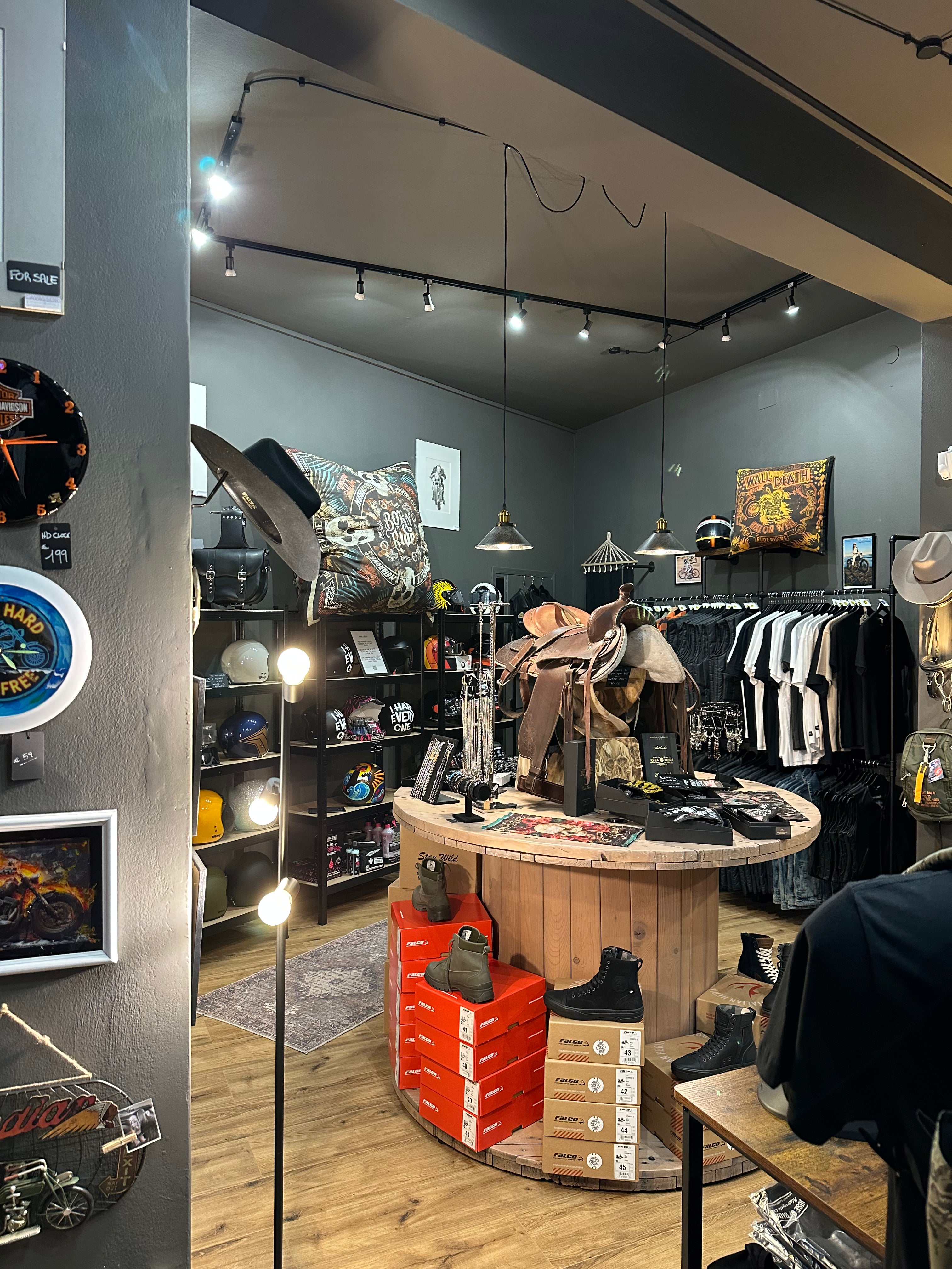 Die Atmosphäre der Prohibitionszeit der 20er und 30er Jahre, die düsteren Farbtöne und die Leidenschaft für die Motorradkunst machen jeden Besuch zu einem Erlebnis, das über das reine Einkaufen hinausgeht.