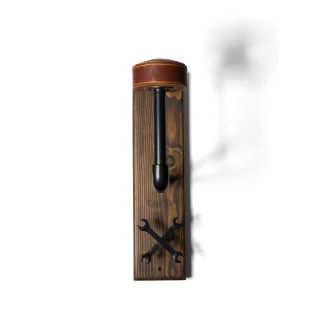 Jeder Helm braucht seinen Platz, deshalb hängen Sie ihn mit diesem Helmträger von Trip Machine an die Wand. Halten Sie Ihre gesamte Fahrerausrüstung organisiert und aus dem Weg – ideal zur Aufbewahrung von Helm, Handschuhen, Jacke und Schlüsseln. Einfache Wandmontage mit 2 mitgelieferten Schrauben. Sorgfältig entworfen mit ausreichend Platz zwischen der Rückseite des Helms und der Holzbasis, makellos gefertigt aus antikisiertem Holz, mattschwarzem Eisen und hochwertigem Leder. Eine stilvolle Ergänzung für Garage, Männerhöhle oder Flur.